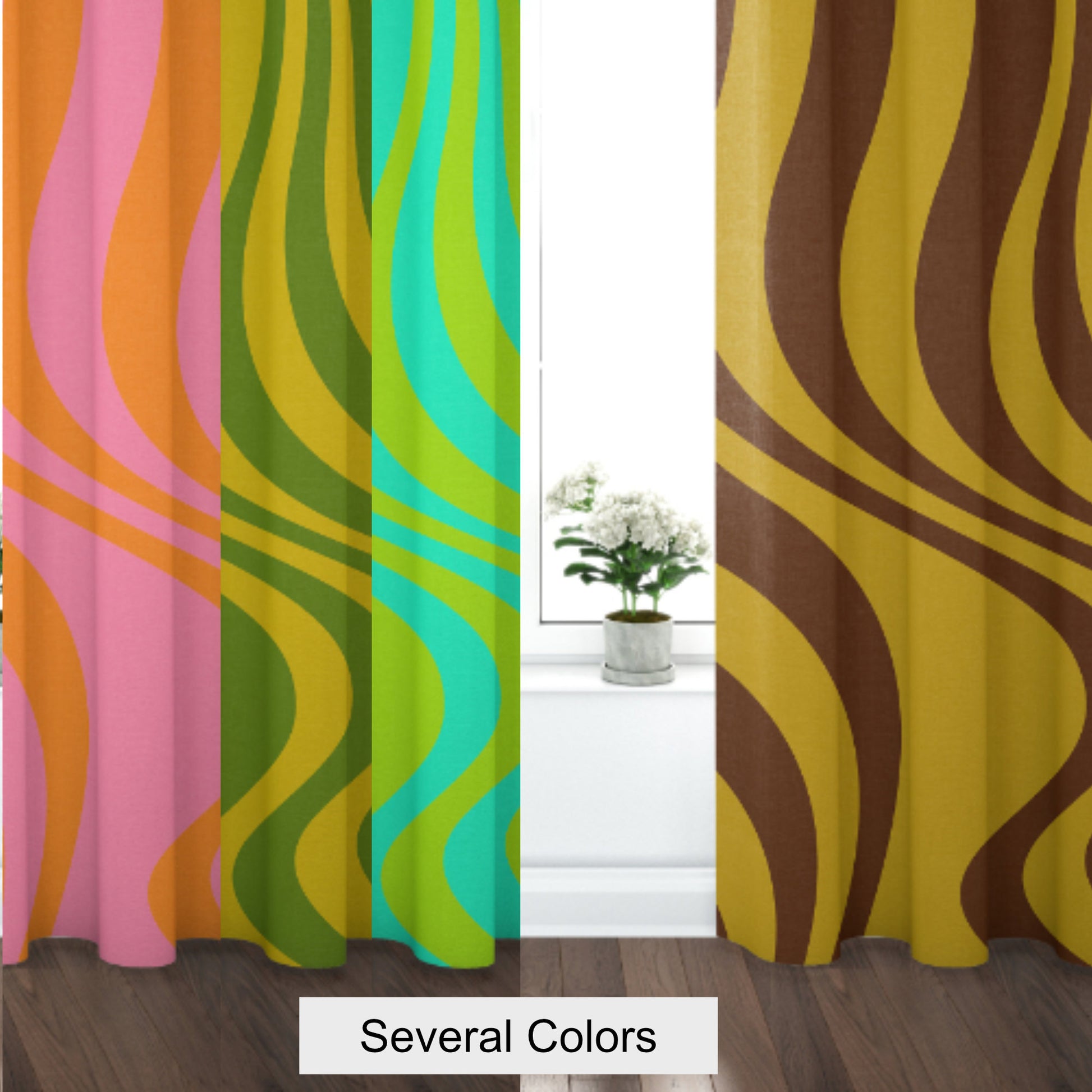 Curtain Blackout or Sheer Panel Vintage Style Retro 60s 70s Modern Swirl Orange Pink Blue Green 70s9