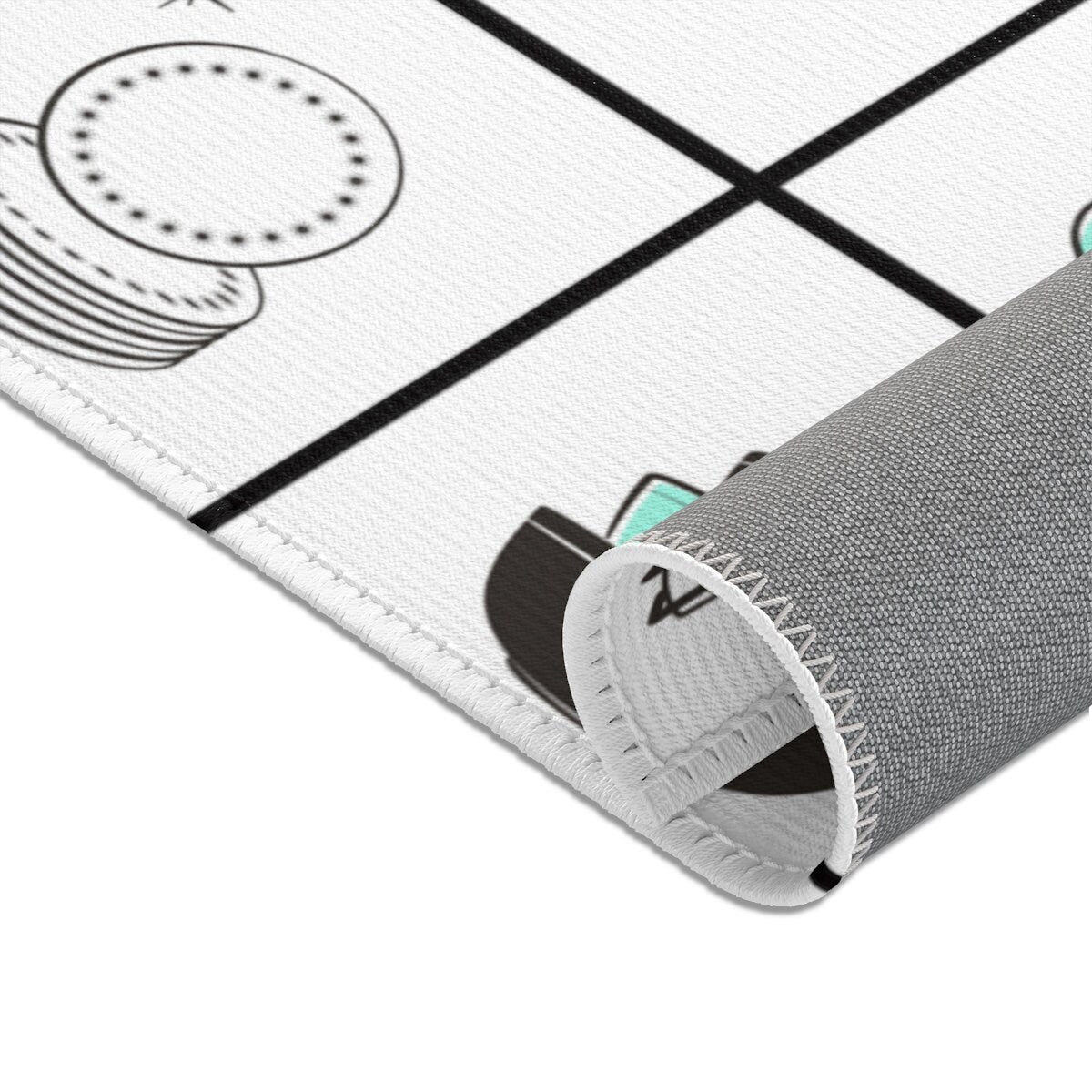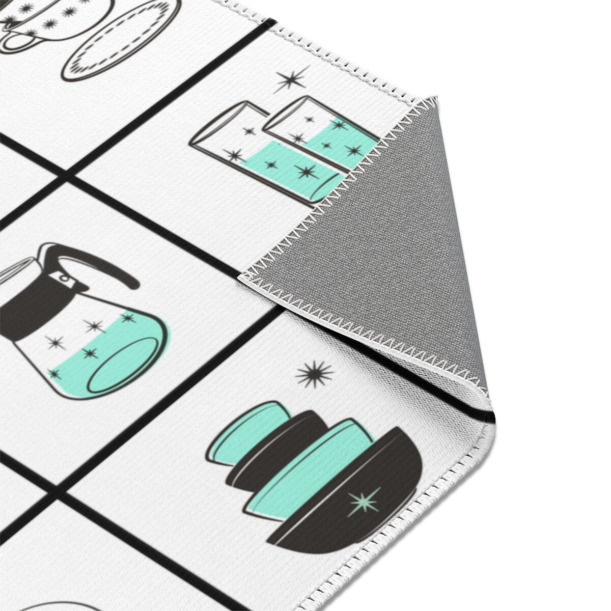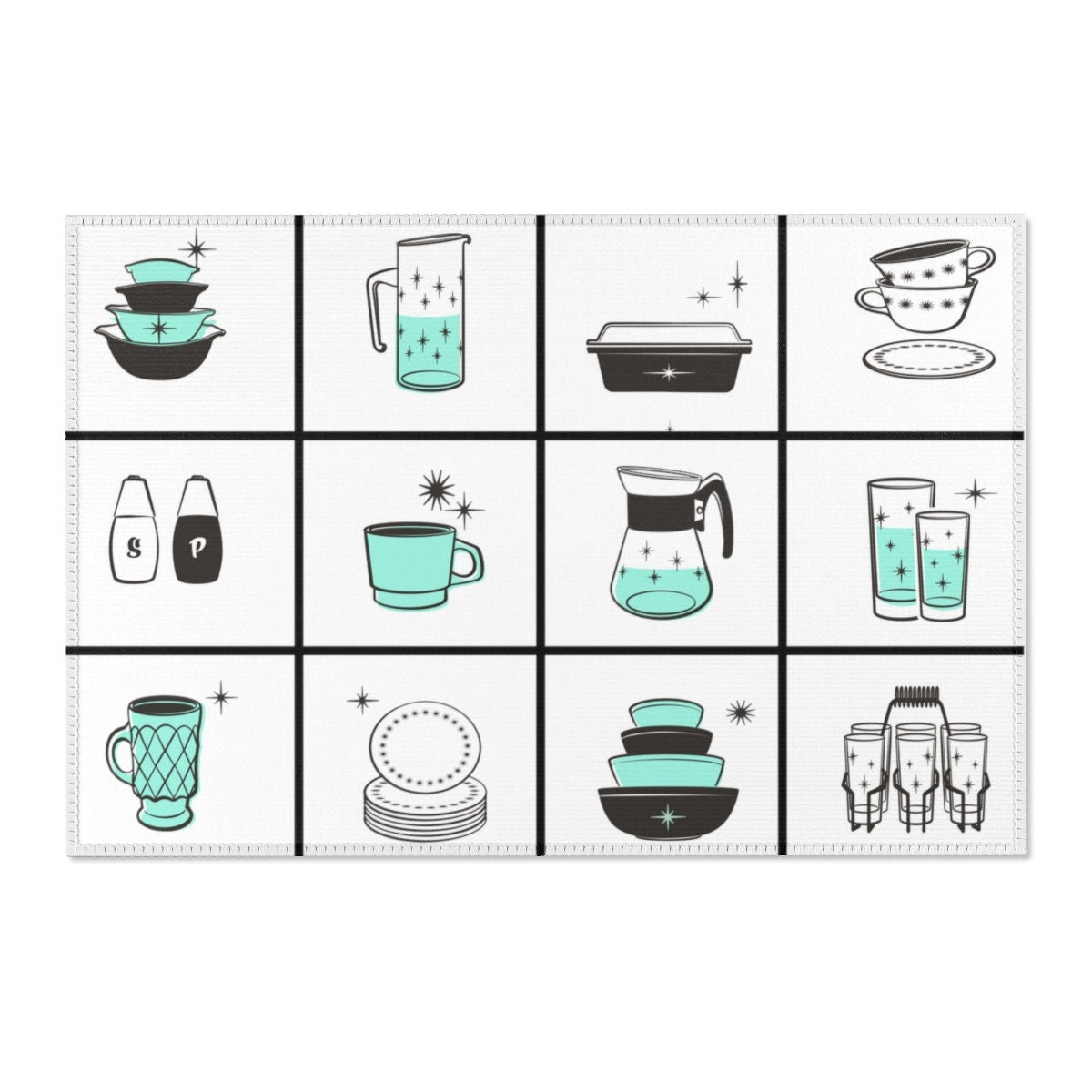 MCM Mid Century Modern Retro Kitchen Rug Vintage 50s Cookware White