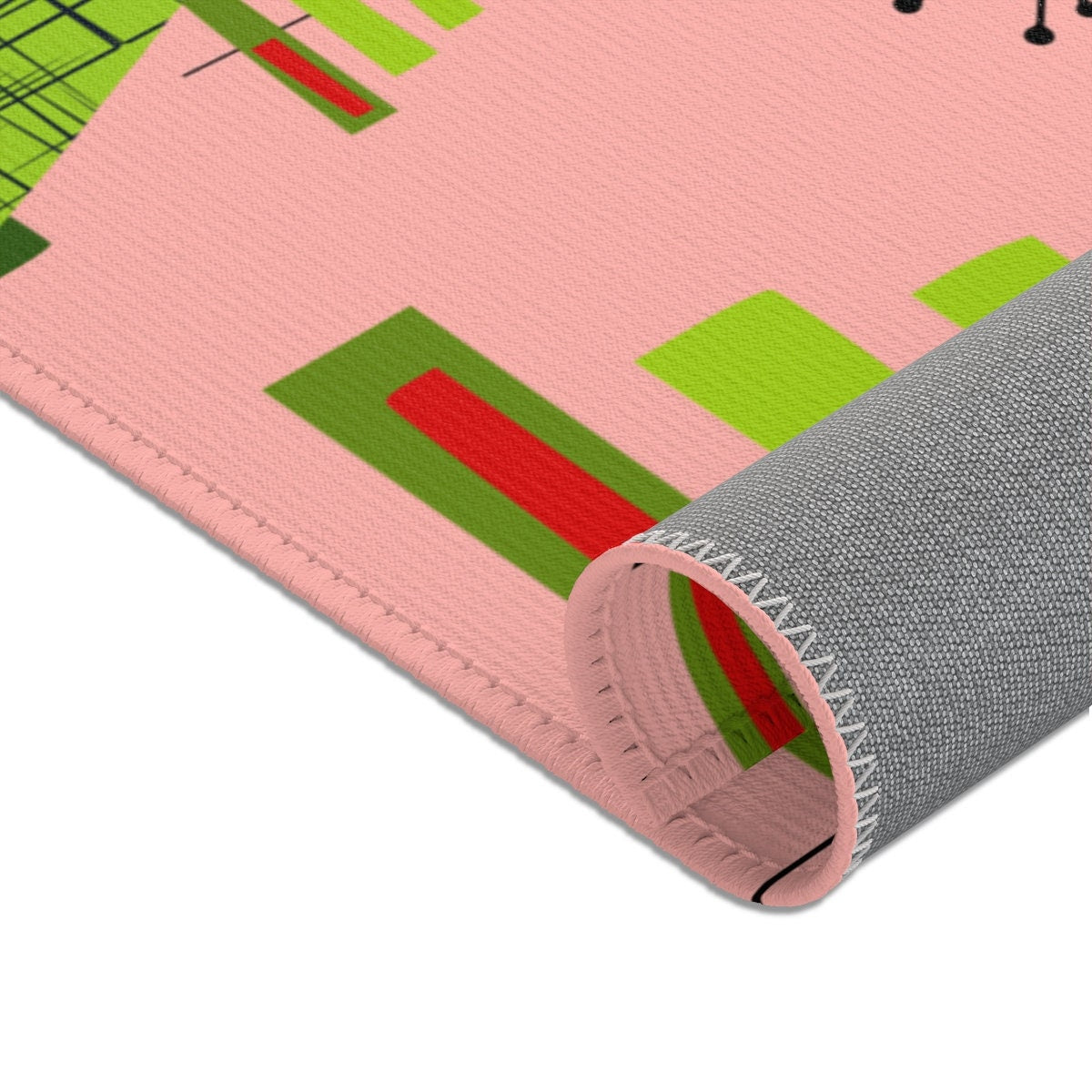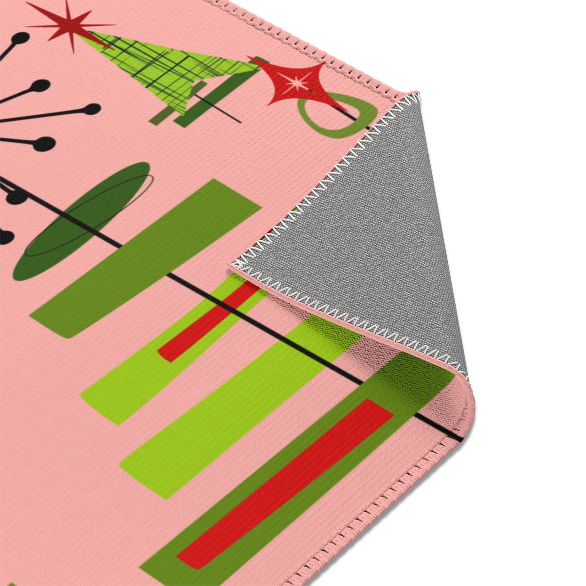 Mid Century Modern MCM Christmas Holiday Festive Area Rug Mat Pink