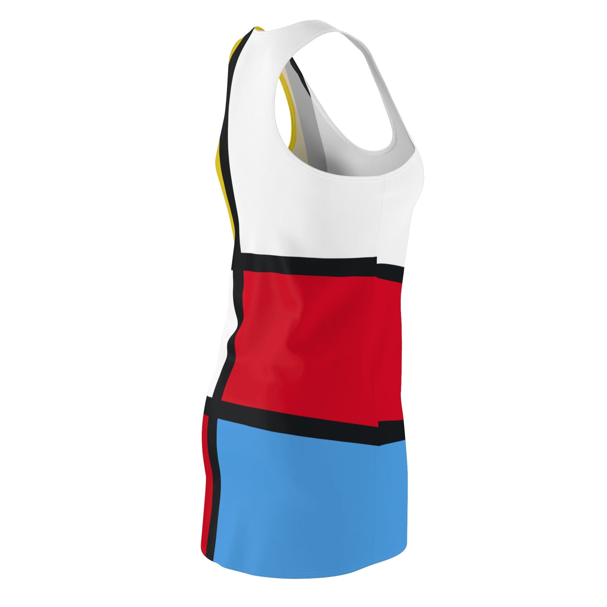 Mondrian Black White Red Blue 1960s 60s Style Dress Beach Cover Up Retro Fashion Clothing for Women Small Medium Large