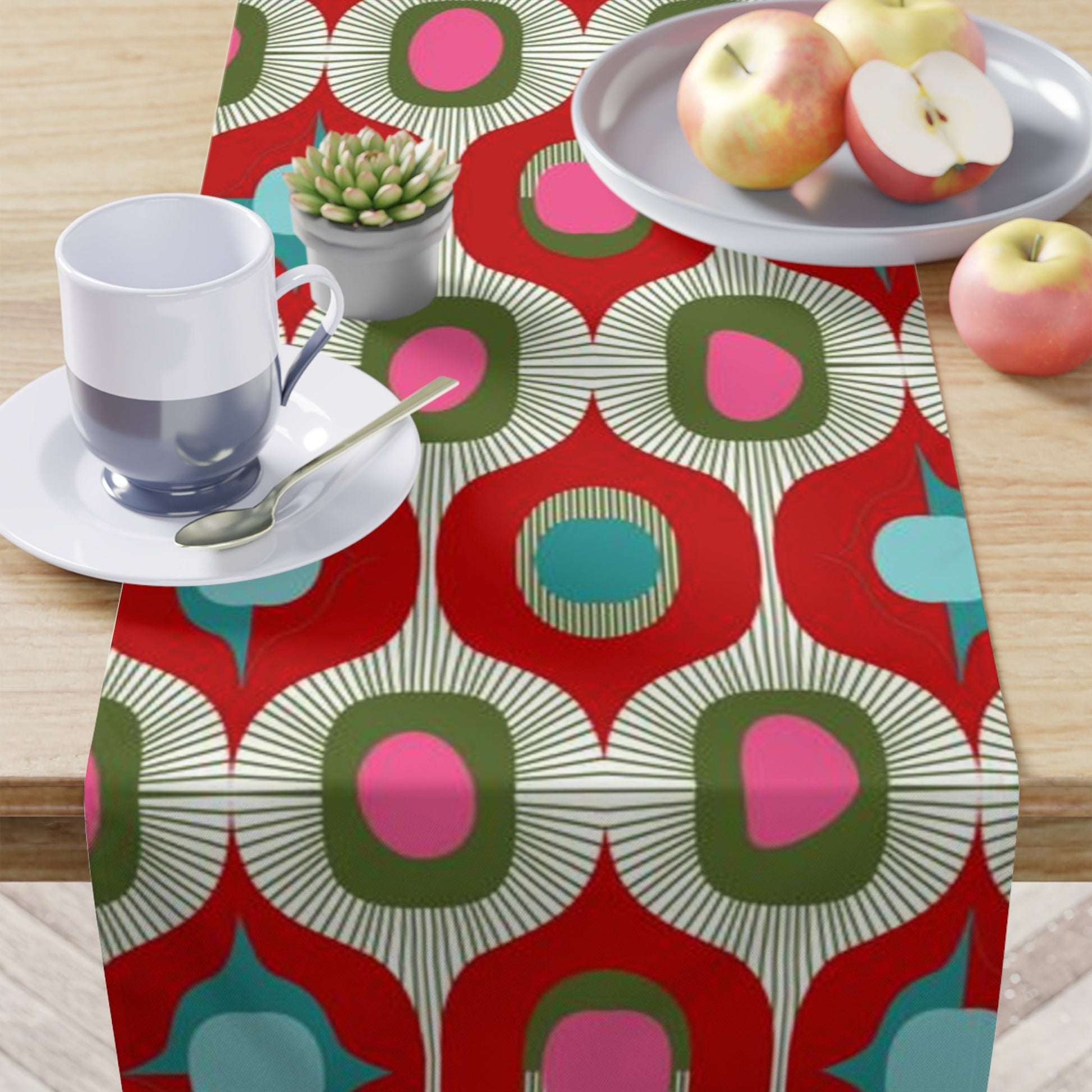 Table Runner Mcm Retro Vintage Style Geometric Red